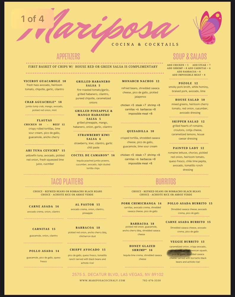 Mariposa Cocina Menu (Update 2025)